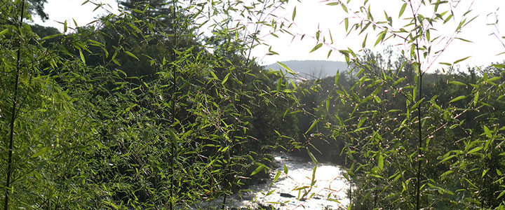 川上の靄が徐々に晴れ、春に育った竹に小さな「朝露」が美しく輝いています。北海道には竹が無いと聞きます...