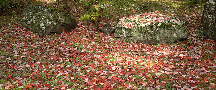 急に冷え込む朝を迎え、深い緑の上に色とりどりの落ち葉が重なり合う季節です。 メイプルの葉です。白っぽ...