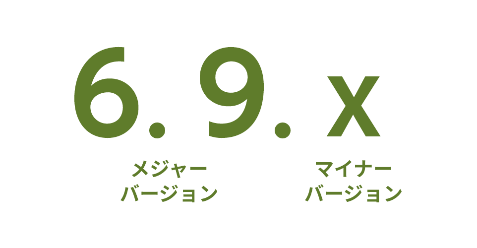 WordPress(ワードプレス)のバージョンとは、3つの数字が「.」でつながった形で表記されているもので、左から1番目と2番目の数字がメジャーバージョン、左から3番目の数字がマイナーバージョンと呼ばれます。(マイナーバージョンが0の場合は省略表記されます)。