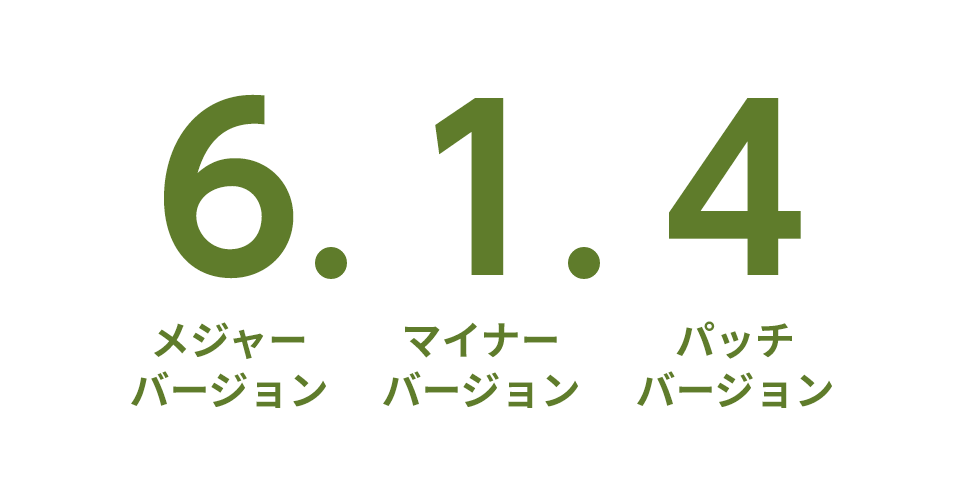 3つの数字の左から「メジャーバージョン.マイナーバージョン.パッチバージョン」となります(パッチバージョンが0の場合は省略表記されています)。