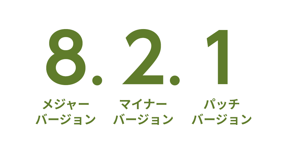 3つの数字の左から「メジャーバージョン.マイナーバージョン.パッチバージョン」となります。
