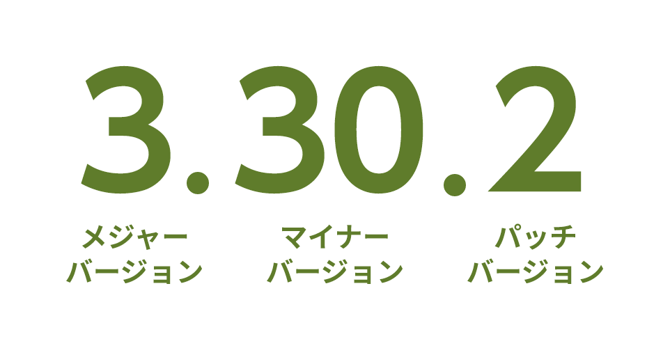 3つの数字の左から「メジャーバージョン.マイナーバージョン.パッチバージョン」となります。