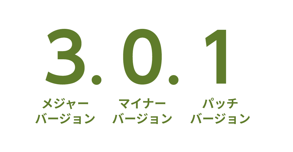 3つの数字の左から「メジャーバージョン.マイナーバージョン.パッチバージョン」となります。