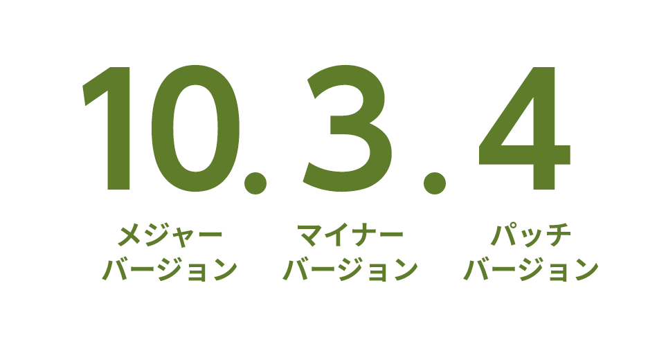 3つの数字の左から「メジャーバージョン.マイナーバージョン.パッチバージョン」となります。