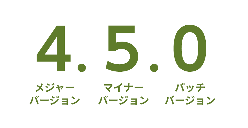 3つの数字の左から「メジャーバージョン.マイナーバージョン.パッチバージョン」となります。