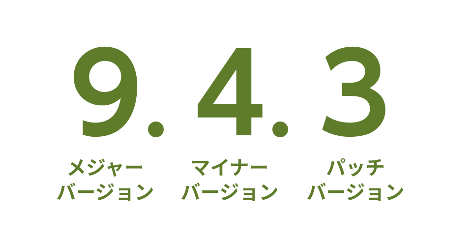 3つの数字の左から「メジャーバージョン.マイナーバージョン.パッチバージョン」となります。