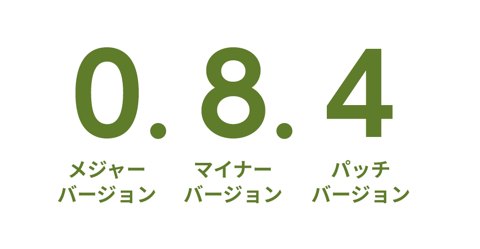 3つの数字の左から「メジャーバージョン.マイナーバージョン.パッチバージョン」となります。