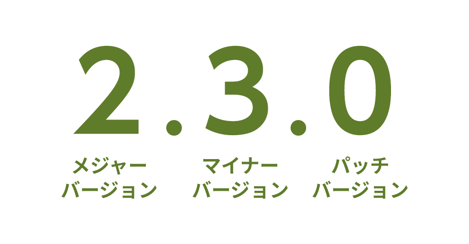 3つの数字の左から「メジャーバージョン.マイナーバージョン.パッチバージョン」となります(稀に4桁目が存在しますが、緊急対応や小規模の修正であると考えられます)。