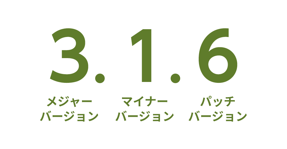 3つの数字の左から「メジャーバージョン.マイナーバージョン.パッチバージョン」となります。