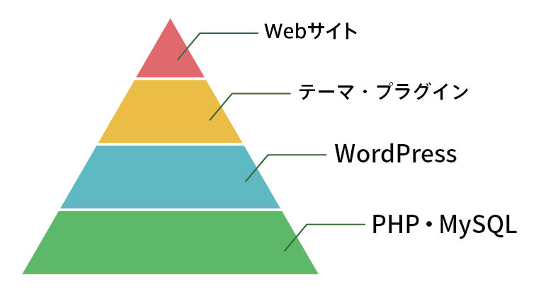 すなわち、WordPressサイトの保守管理を担当するには、Webサイト(HTML、CSS)、各種ライブラリ(jQuery等)、テーマ・プラグイン、CMS(WordPress)、PHPだけでなく、その他のミドルウェア(Apache、nginx、MySQL等)、OS(CentOS、Amazon Linux 2等)、クラウドサーバー(AWS、Azure等)を総合的にメンテナンスできる能力・体制が必要となってきたのです。