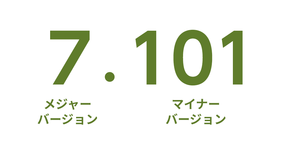 公式サイトに直接的な記載はありませんが、この記事では、左側の数字を「メジャーバージョン」、右側の数字を「マイナーバージョン」と呼ぶこととします。