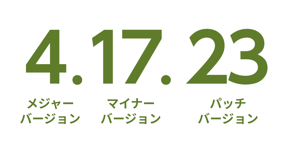 Lodashは、セマンティックバージョニングに近いバージョニングが採用されており、左からメジャーバージョン、マイナーバージョン、パッチバージョンの3つの数字で構成されています。